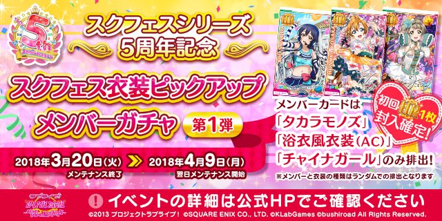 【お知らせ】スクフェスシリーズ5周年を記念して、スクフェスACでも様々なイベントを予定しております!本日は3月第2弾の内容をご紹介いたします!#lovelive #スクフェスAC #スクフェスシリーズ5周年