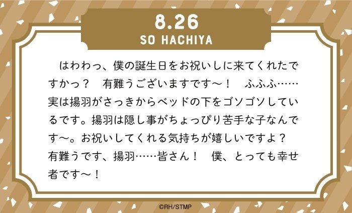 ✨8月26日は蜂矢聡のBirthday✨