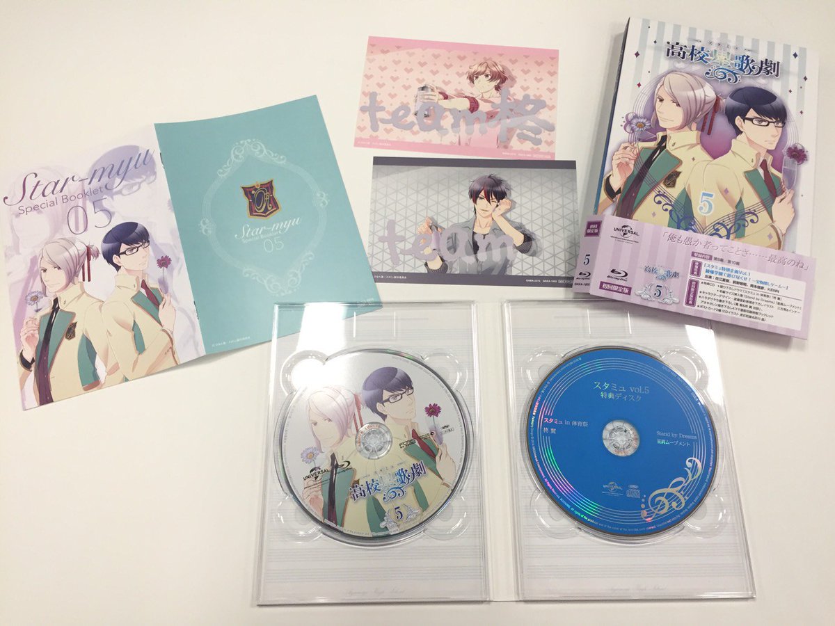 本日4月22日はスタミュ第5巻発売日♪描きおろしジャケットやドラマ等収録の特典CD、出演キャスト4名による映像特典「スタミュ特別企画Vol.1!綾薙学園で遊び尽くせ!~宝物探しゲーム~」他収録!お見逃しなく★ #スタミュ