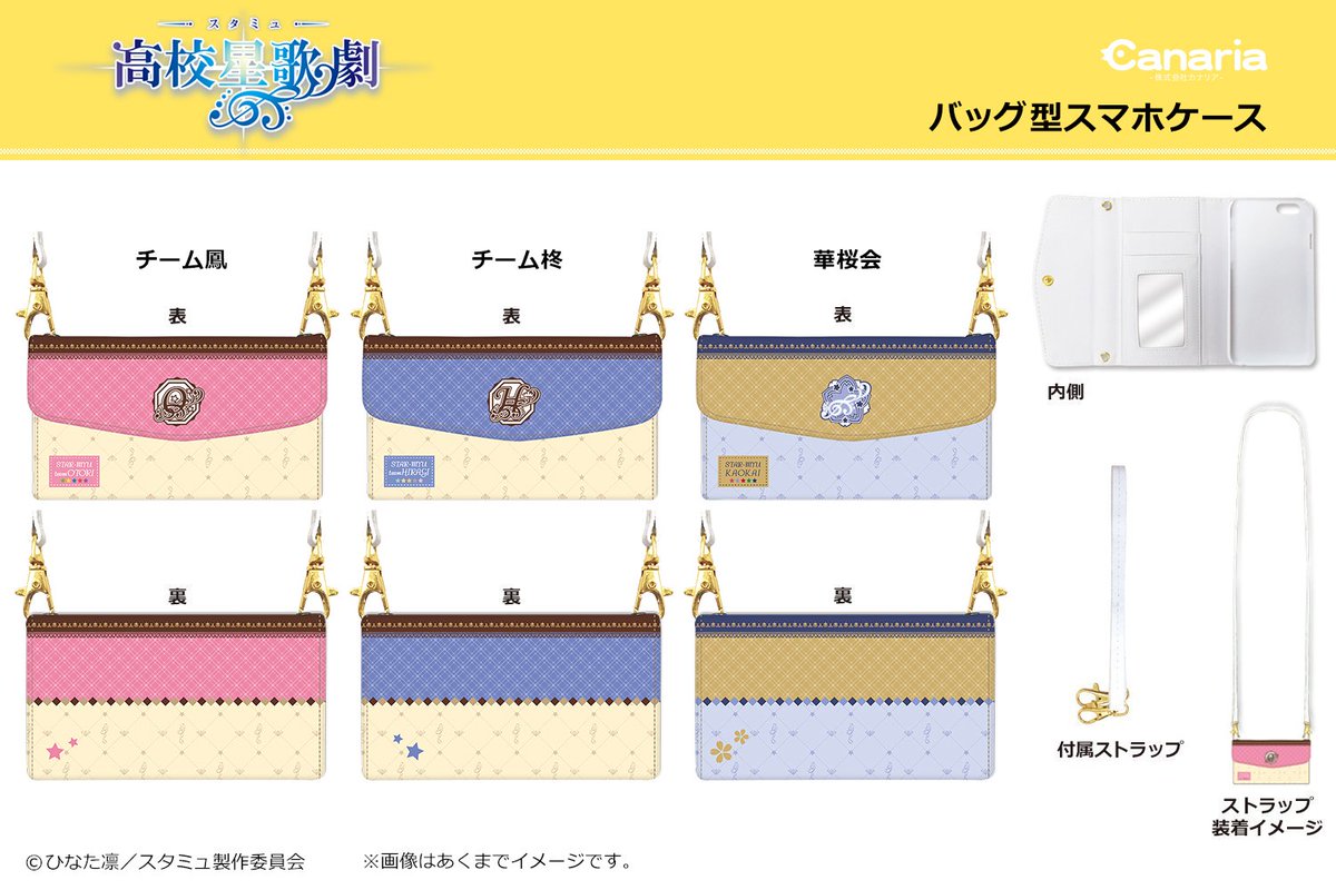 TVアニメ「スタミュ」より手帳型スマホケースが登場!team鳳のメンバーがデザインされた2パターンに綾薙学園の校章がデザインされたパターンの全3種!11/5開催のAGF2016にて先行販売されます♪ #スタミュ tc-ent.co.jp/sp/agf2016/ind…
