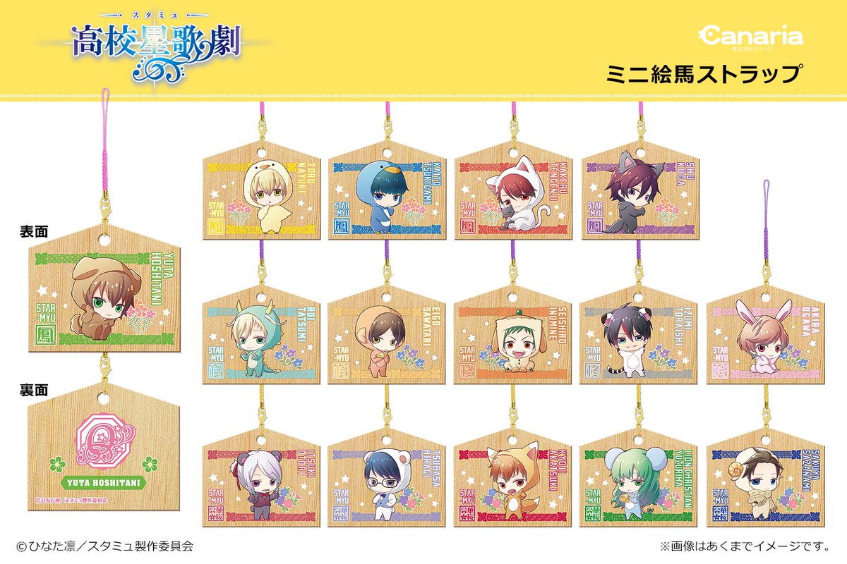 『スタミュ』よりミニ絵馬ストラップが15種で登場です!木製の絵馬にアニマルスタイルのキャラクターが♡とてもほっこりなアイテムです(´ω`●)(種類数訂正しました。失礼しました。) #スタミュ