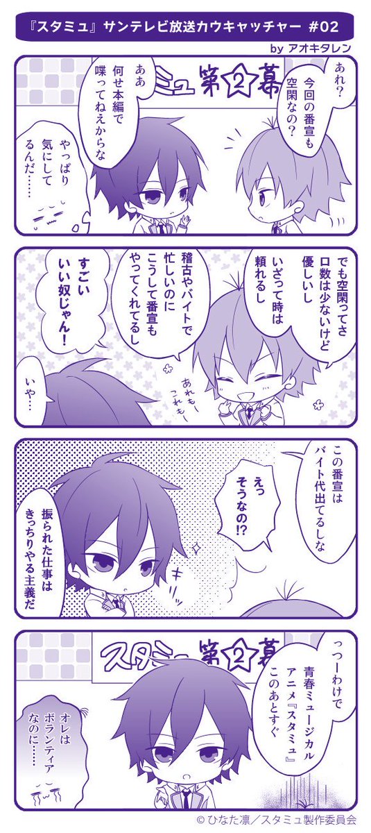 サンテレビ放送分、新規CC12週連続更新!アオキタレン先生にご協力頂き、台詞はそのままに内容を4コマ化★第2幕をお届けです♪ #スタミュ