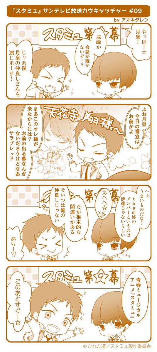 サンテレビ放送分新規CC12週連続更新!アオキタレン先生にご協力を頂き、台詞はそのままに内容を4コマ化★第9幕をお届け♪ #スタミュ