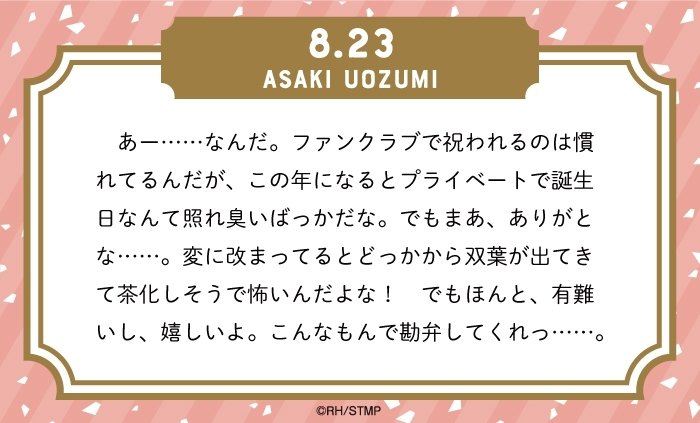 ✨8月23日は魚住朝喜のBirthday✨