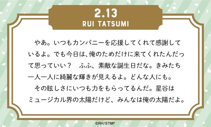 ✨2月13日は辰己琉唯のBirthday✨