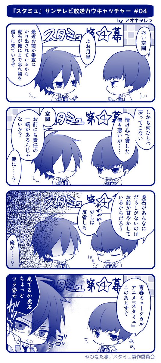 サンテレビ放送分新規CC12週連続更新!アオキタレン先生にご協力を頂き、台詞はそのままに内容を4コマ化★第4幕をお届け♪ #スタミュ