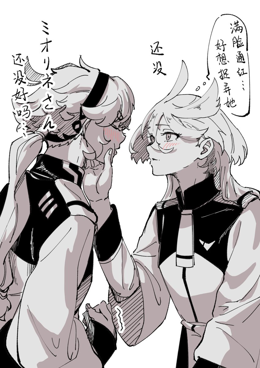 ミオリネ総裁(妻)とスレッタ高官(夫)な図。 ミオリネさんが専門用語で喋るもんだからスレッタは「??」ってなってる、そんなひとコマ。 ミオリネさんの右腕はリリッケかなぁと思うけどスレッタは「唯一」でミオリネさんの夫と分かるように特別仕様の高官服着てる妄想。