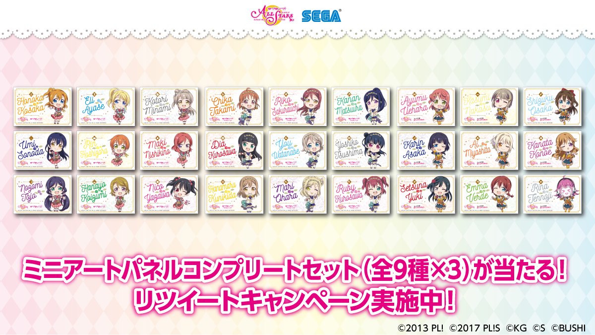 【応募用ツイート】#セガのお店 で開催中の『ラブライブ!スクールアイドルフェスティバルALL STARS』を記念し「クリアファイルコンプリートセット」を抽選で3名にプレゼント!