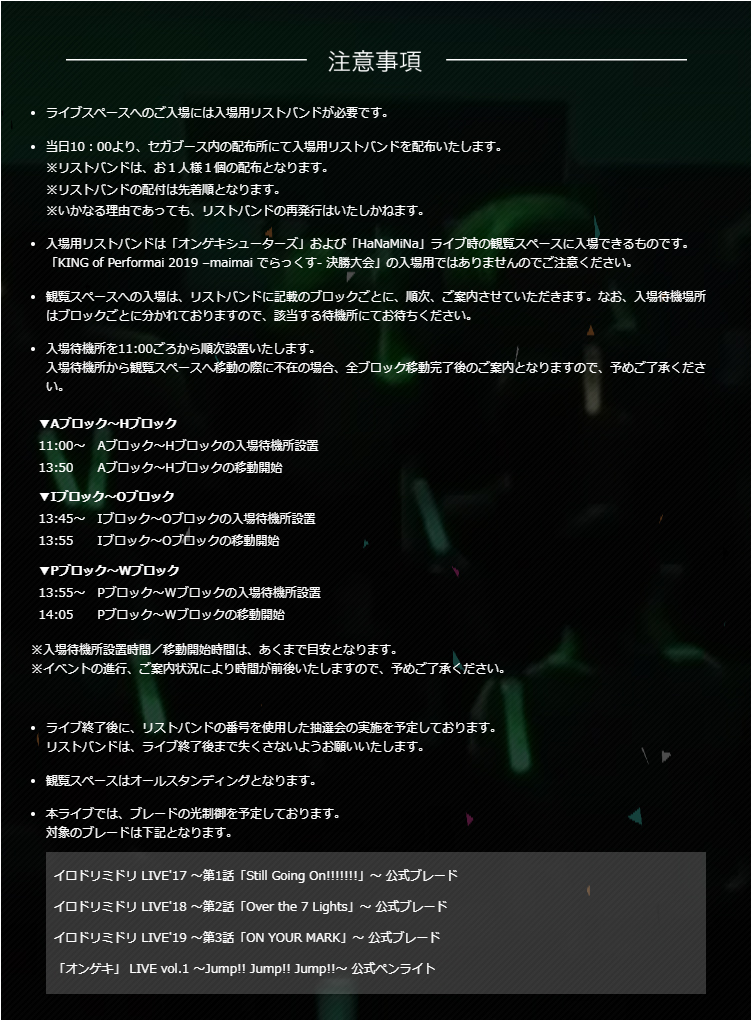 ライブ特設サイトにて、当日の入場待機列についてのご案内を掲載しました。ライブスペースへの入場を予定している方は、必ずご一読下さい。