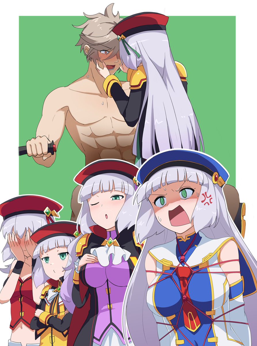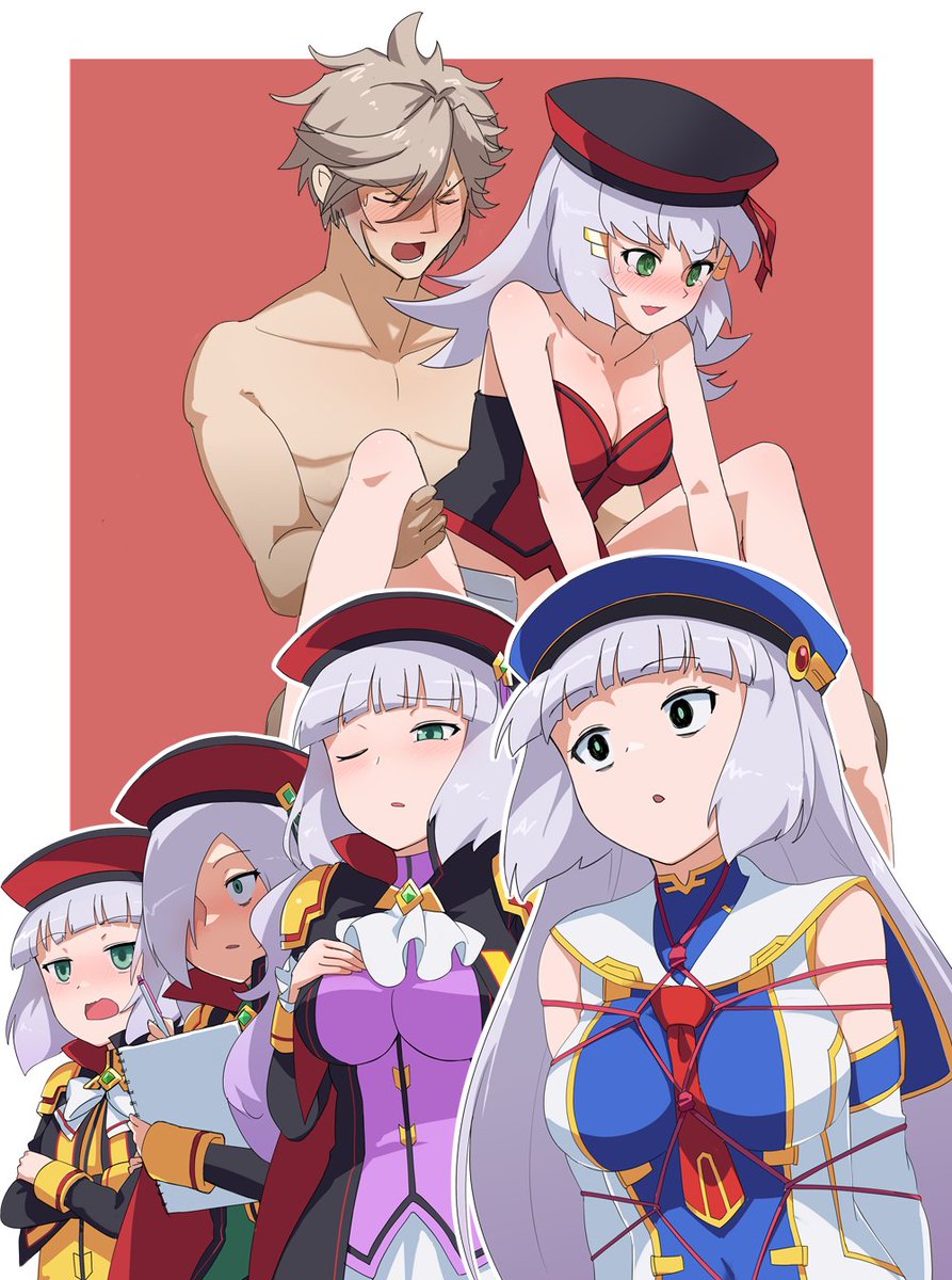 この手の絵には慣れていないので手探りで描いている…。 石動ガードも二機飛ばしたので未成年も安心だ…そうだろうアルミリア…。 #セシア・アウェア