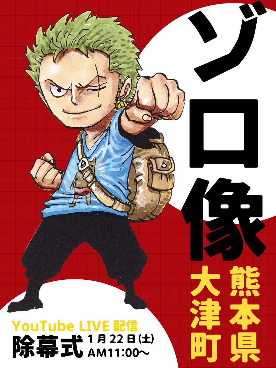 【このあと生中継】 本日11時より、「#ゾロ像 」の除幕式が行われます! 配信は10:45のオープニングアクトから! ゾロの勇姿をぜひご覧ください! ゾロ像除幕式生中継 ↓YouTubeでみる↓ youtu.be/h8wkAHKICTI