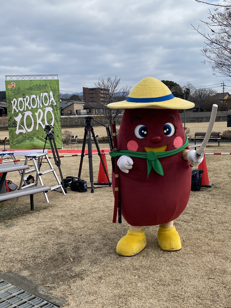 今日のくまモンはゾロ衣装! 大津町のゆるキャラ「からいもくん」も駆けつけてくれました! #ゾロ像 除幕式生中継 ↓YouTubeでみる↓ youtu.be/h8wkAHKICTI