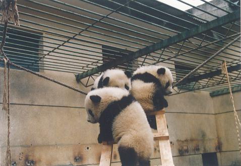 お友達とひっつきながら遊んでいるパンダたち🐼
