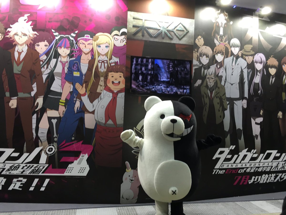アニメジャパン、NBCユニバーサルブースにて「ダンガンロンパ3 -The End of 希望ヶ峰学園-未来編/絶望編」の壁面パネルを公開中です。今ならモノクマも遊びに来ております! #ダンガンロンパ