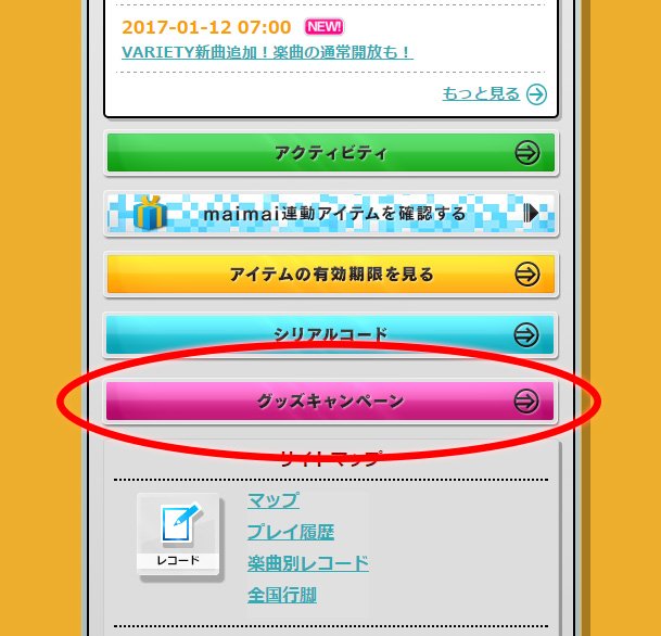 本日より開催の「オリジナルグッズプレゼントキャンペーン」のグッズの引換えは、CHUNITHM-NET内の「グッズキャンペーン」ボタンより行うことが可能です。もしボタンが表示されない場合は、ご利用のブラウザのキャッシュクリア・再読み込みをお試しください。 #チュウニズムAIR