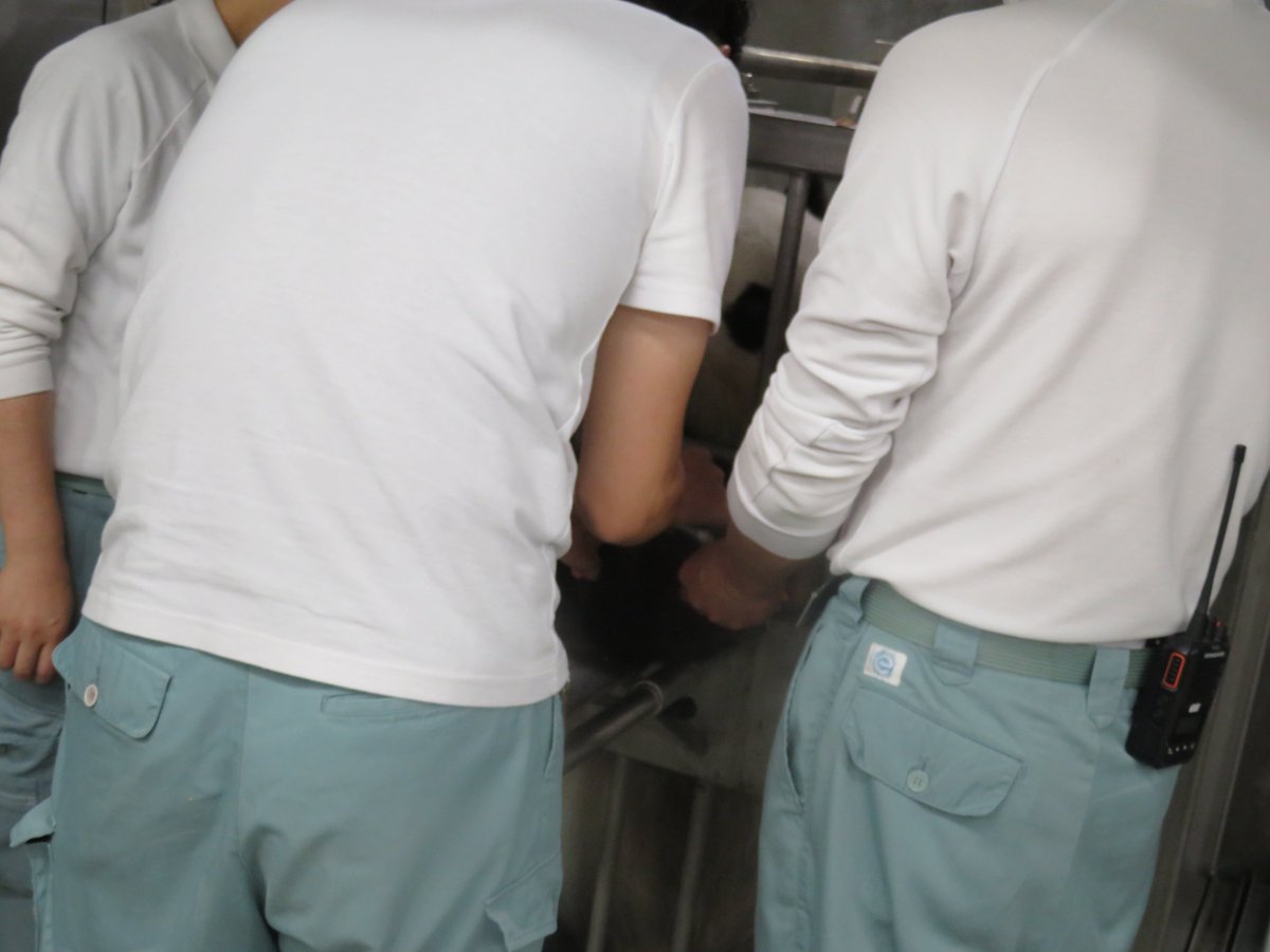 #チームタンタン にも若いメンバーが増えたので、今日は獣医の係長に確認してもらいながら若手が採血を行いました🐼