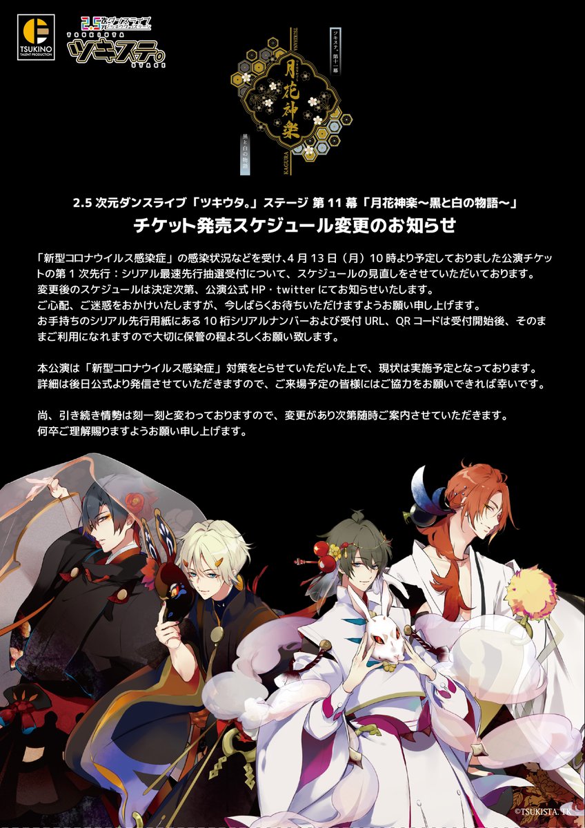 第11幕「月花神楽~黒と白の物語~」について、延期させて頂いておりましたチケット販売スケジュールを決定致しました