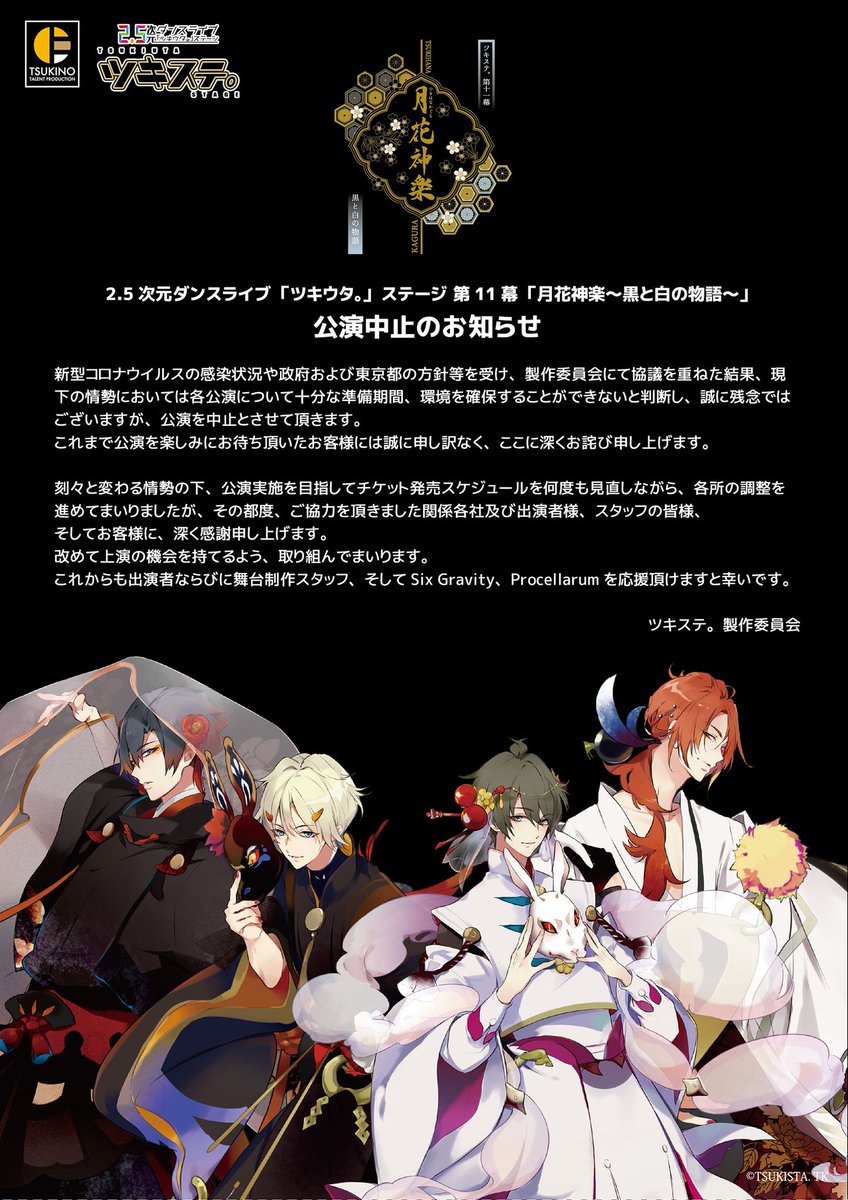 改めて上演の機会を持てるよう取り組んでまいります。以上、何卒ご理解ご了承の程、お願い申し上げます。