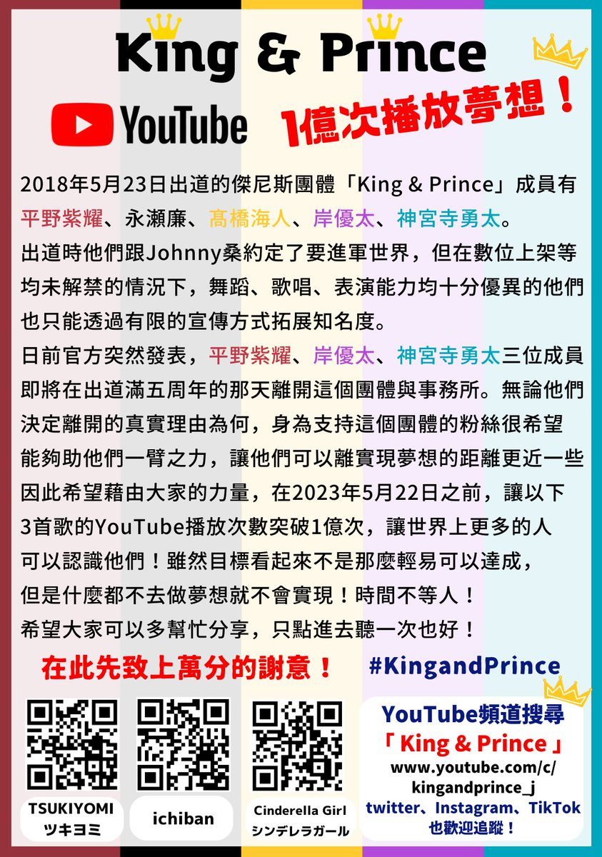 もっともっと世界中の人にキンプリのことを知ってもらい、協力してもらうため作成した画像ですので、ご自由に保存していただき、色々なSNSで拡散していただきたいです🙇
