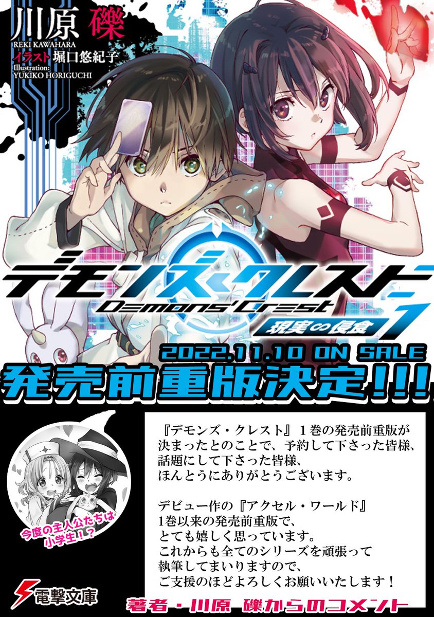 『SAO』の作者、川原礫による完全新作小説『デモンズ・クレスト』発売決定!