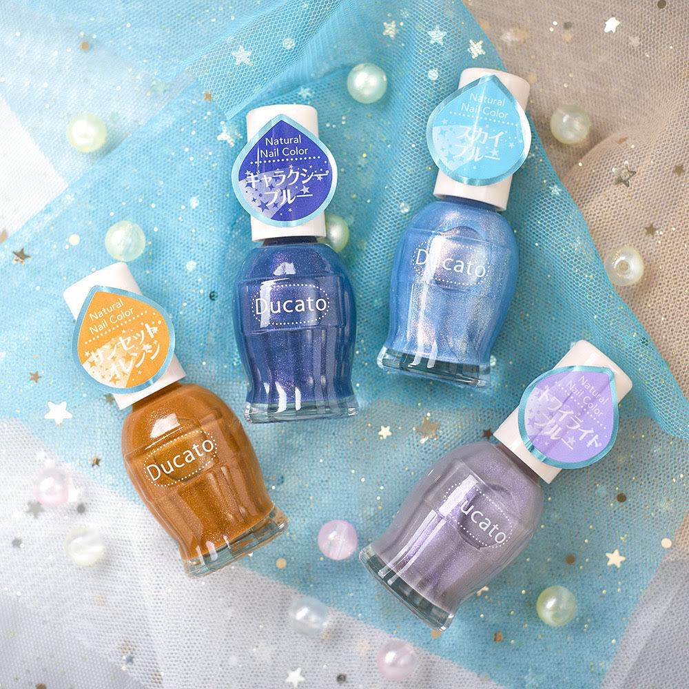 ナチュラルネイルカラーN夏の限定色 ブルースカイモーメントシリーズが発売となります🤗 154 スカイブルー 155 ギャラクシーブルー 156 トワイライトブルー 157 サンセットオレンジ 6月1日より限定発売 デュカート ナチュラルネイルカラーN 限定4色 各¥660(税込) #Ducato #デュカート