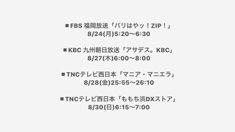 8/29(土)18:00〜18:30放送予定