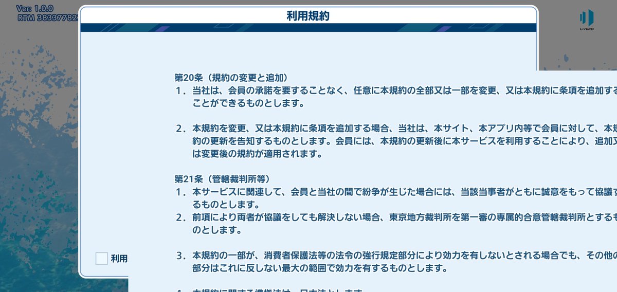 利用規約がズレて同意出来ない斬新なゲーム始まった。