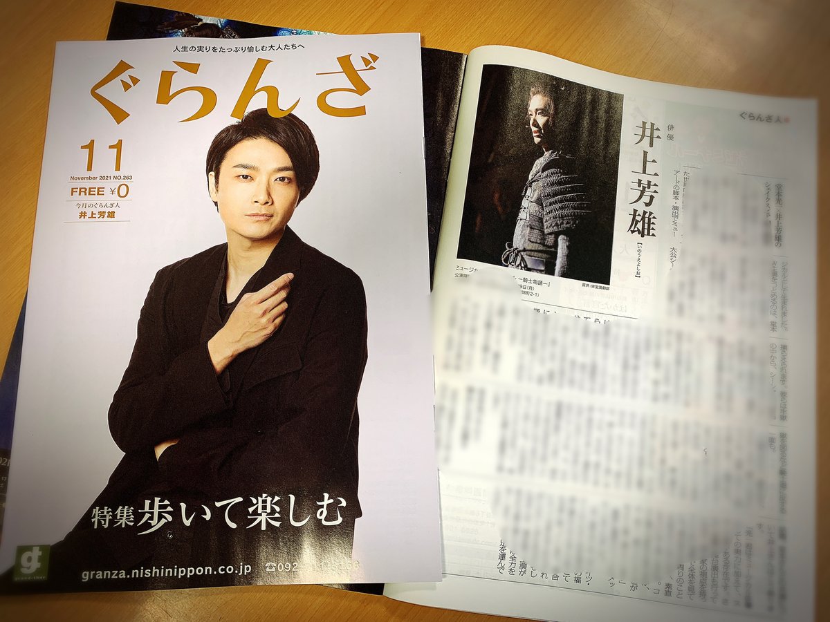 井上芳雄さんがフリーペーパー『ぐらんざ』11月号の表紙に登場!本日より福岡市内にて配布開始!作品、役、W主演の堂本光一さんへの思いなどを語っていただきました。