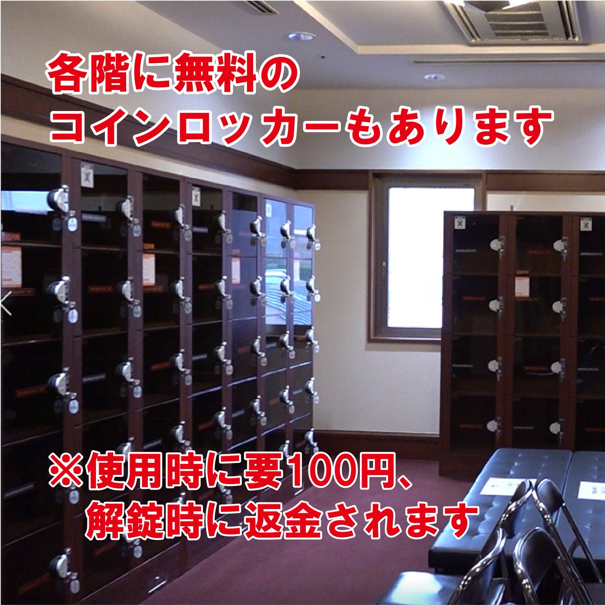 また、遠征につきもののカートなどの大きな荷物はインフォメーションでお預かりいたします。各階には無料のコインロッカーもございます📝