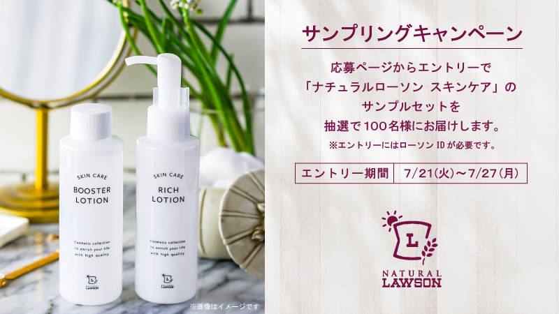 「今よりちょっと丁寧に」をコンセプトにした #ナチュラルローソン スキンケアシリーズのサンプルセットを抽選で100名様にプレゼントします。応募は7/27まで(^^) #ローソン
