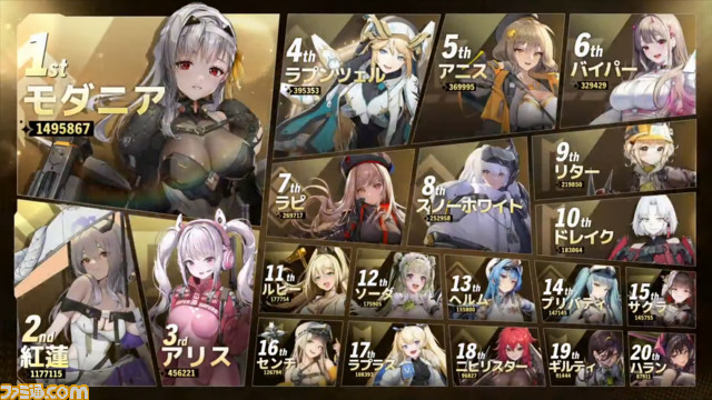 1位のモダニアは新コスチュームの無料配布&等身大フィギュアを作成。5位以内のニケはゲーム内特別フレームを配布!