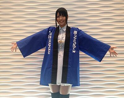 宣伝隊長・大坪由佳さんに、法被を着てもらいました! #ニャル子W