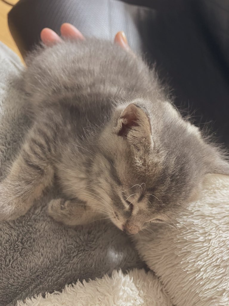 かわいいのですがもう1時間以上この場所で寝ていて姿勢を変えられず足の付け根が痛くなってきました😂