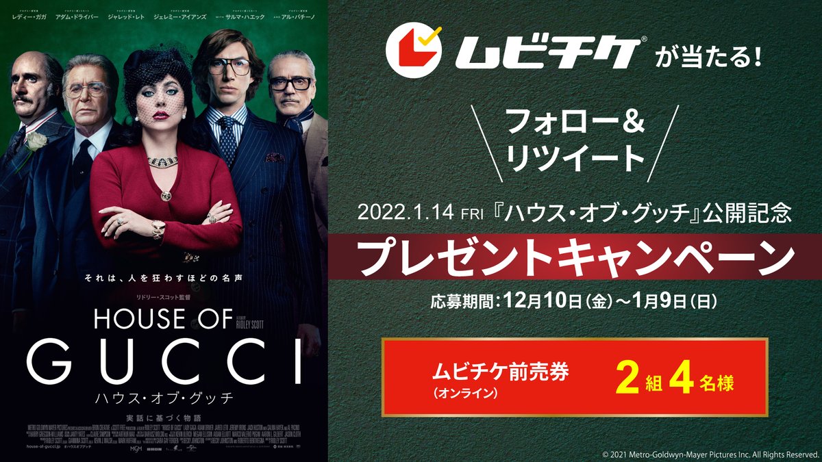 1/14(金)「#ハウスオブグッチ」公開記念フォローRTキャンペーン🛍️