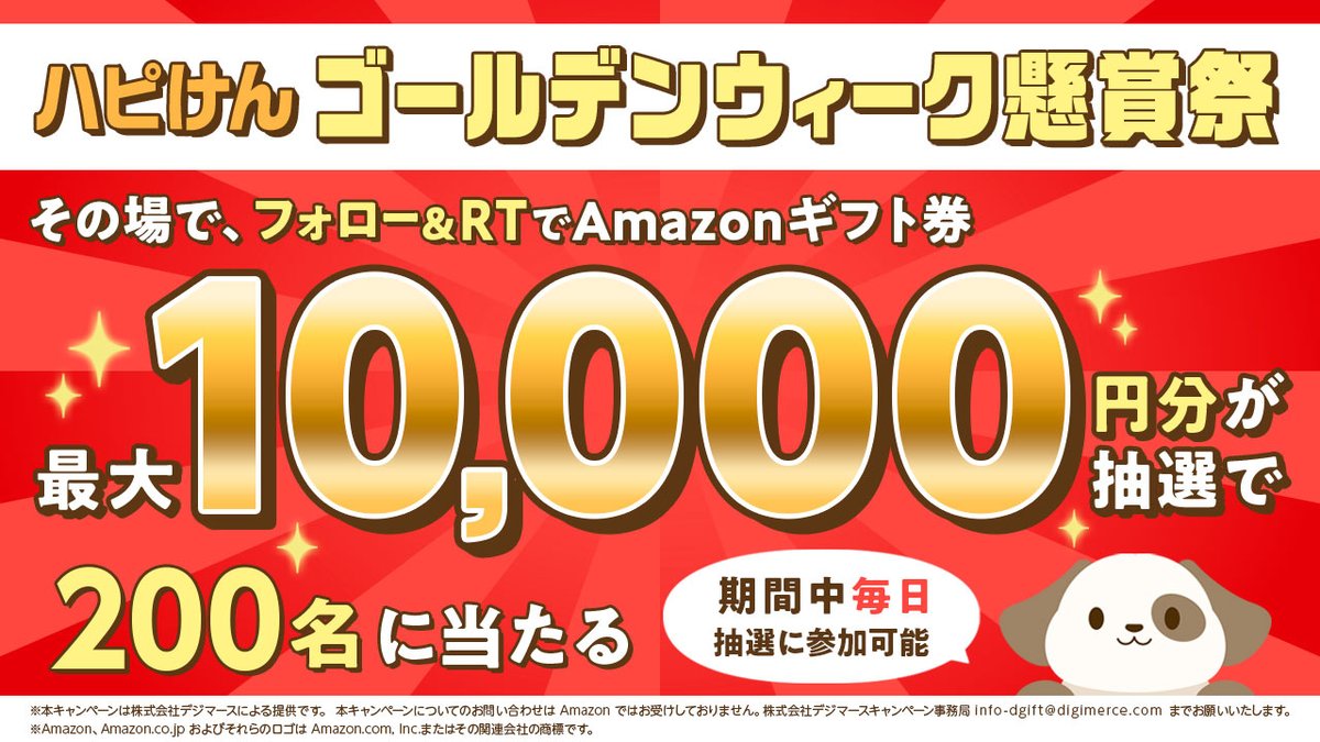 #Amazonギフト券 最大1万円分が抽選で200名様に #その場で当たる ‼️