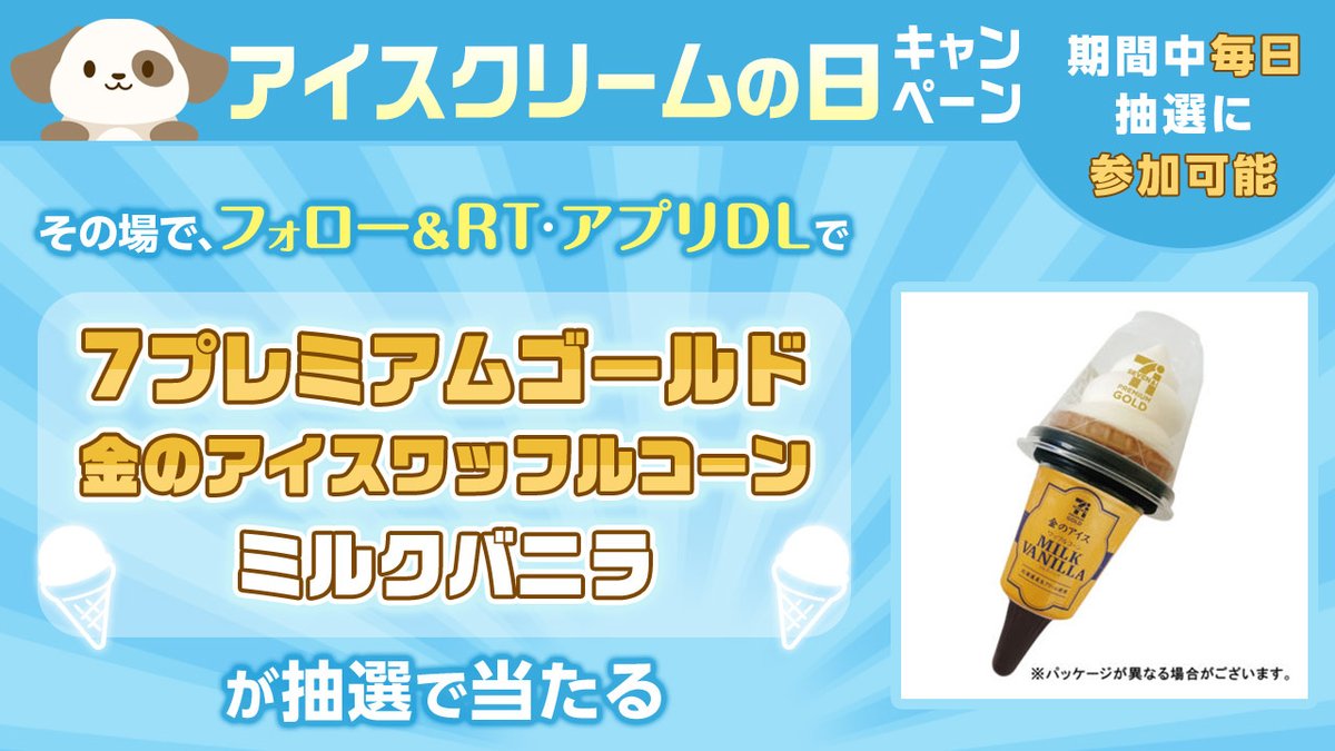 7プレミアムゴールド 金のアイスワッフルコーン ミルクバニラが抽選で40名様に #その場で当たる 🎁
