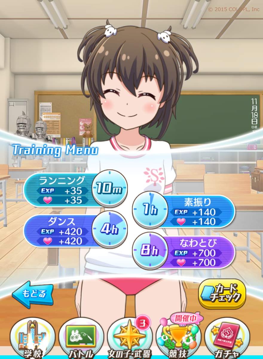 「特訓」時にEXPが入手できるようになるよう、開発を進めています。女の子たちをより育成しやすくなります。 ※画像は開発中のものです #バトルガール