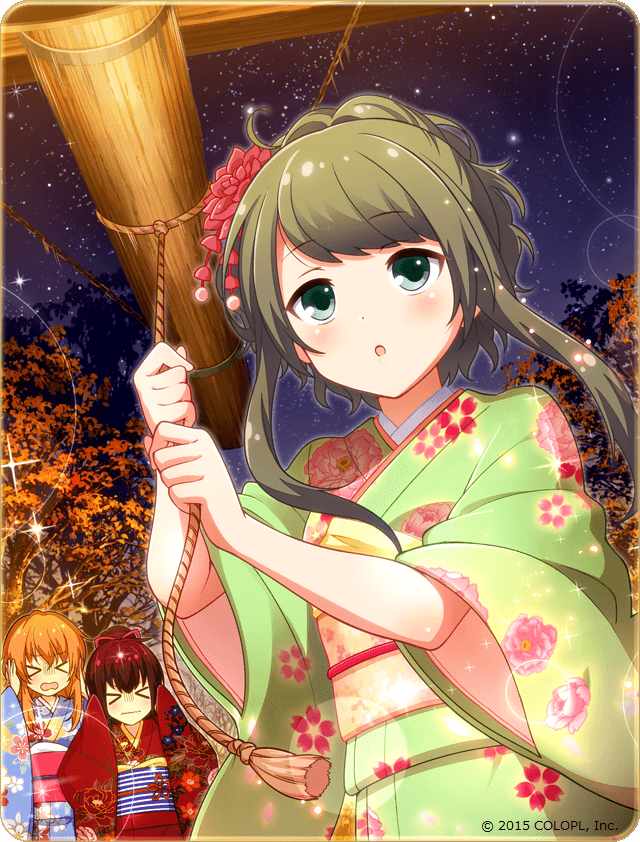 振袖カードの一部を先行公開! 振袖カードは、1人につき「大晦日」と「元旦」の2バージョンあるのが特徴です。このくるみは「大晦日」バージョンです。鐘を鳴らす時もマイペースのようですね(笑) ※画像は開発中のものです #バトルガール
