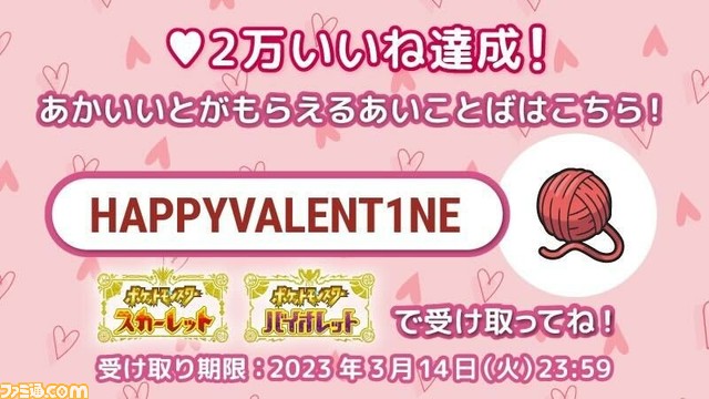 【#バレンタインデー】『#ポケモンSV』にて“あかいいと”&“ラブラブボール2個”が貰える“ふしぎなおくりもの”のあいことばが公開中!