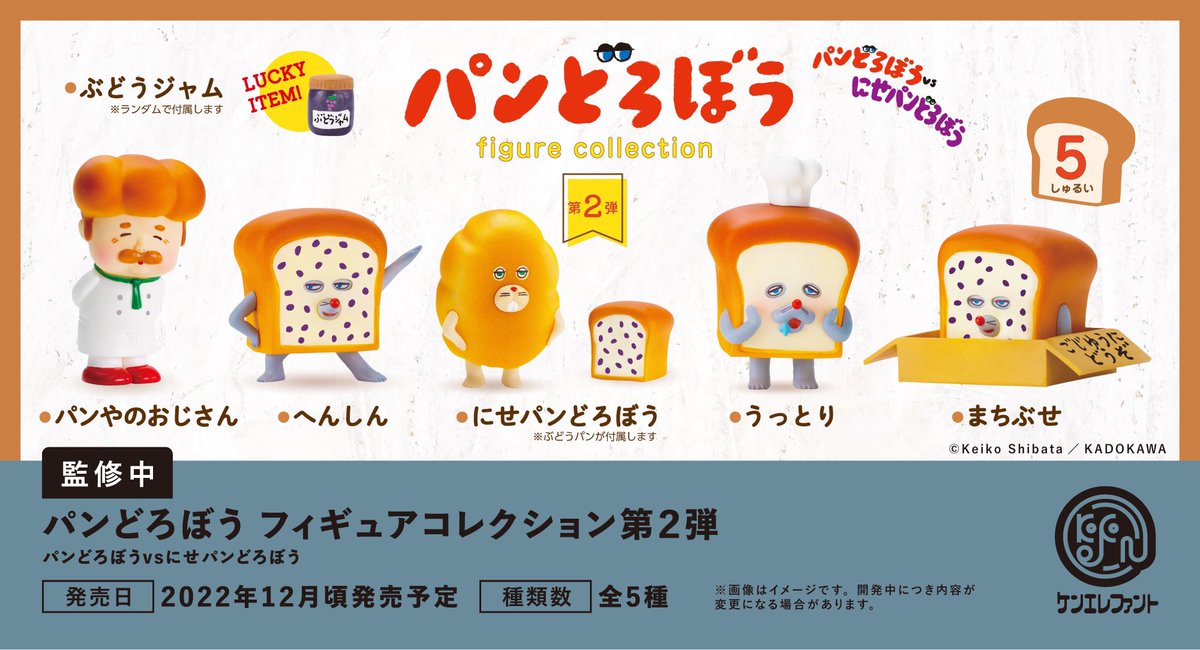 \先行公開/ ケンエレファント 12月の新商品 「パンどろぼう フィギュアコレクション 第2弾」 2022年12月頃発売予定 全5種 ※開発中につき内容が変更となる可能性があります。 ※ケンエレ直営店や全国の一部書店・ホビーショップ等にて取り扱い予定です。 #パンどろぼう #ケンエレ #カプセルトイ