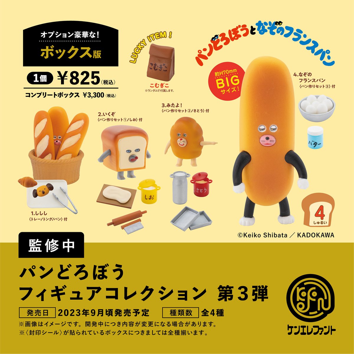 \先行公開/ 「パンどろぼう フィギュアコレクション 第3弾」 全4種 2023年9月頃発売予定 カプセルトイ版 info.kenelephant.co.jp/43j3py6 オプション豪華なボックス版 info.kenelephant.co.jp/3IC6aT0 全種揃うコンプリートBOX予約受付中 ※開発中につき内容が変更となる場合があります。 #パンどろぼう