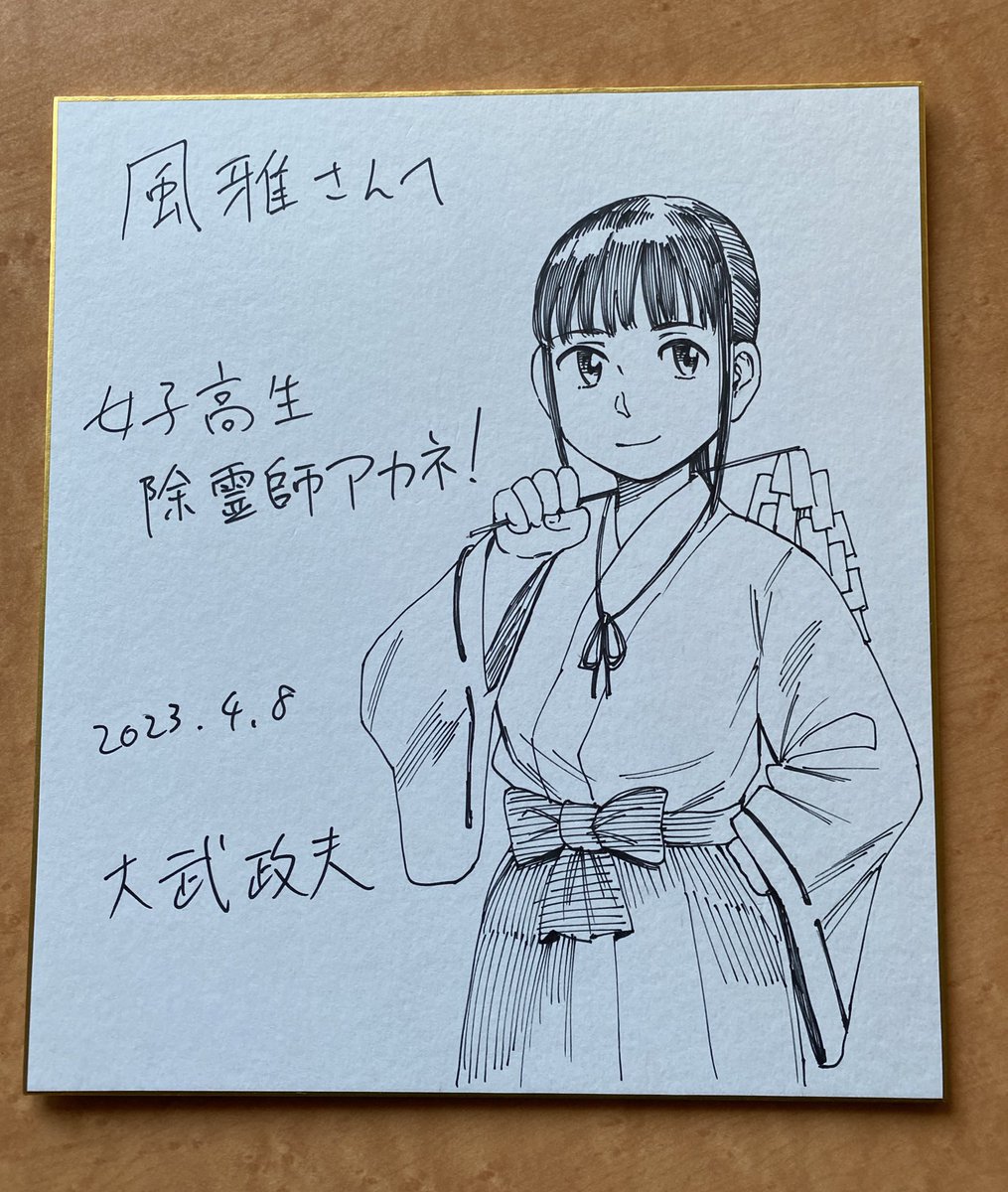 世界初のアカネ!のサイン色紙も描きました。師匠のサインも横にあるのも奇跡的なんだ。