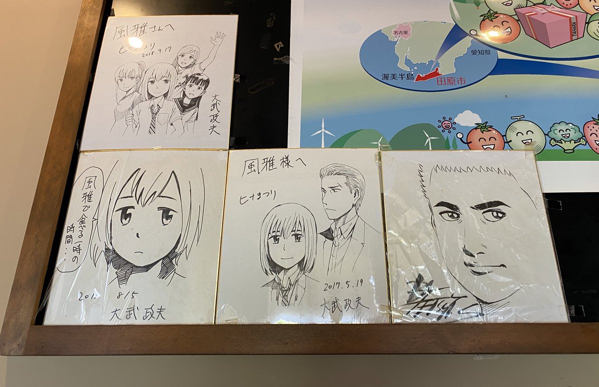 恐らく日本で一番ヒナまつりのサイン色紙が飾られてる店遊食ダイニング風雅。愛知県田原市にあります。