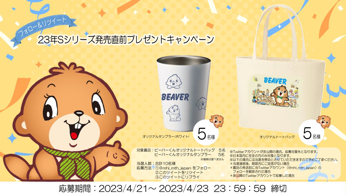 #ビーバーくん 🦫トートバッグまたはタンブラーを抽選で合計10名様にプレゼント!✨
