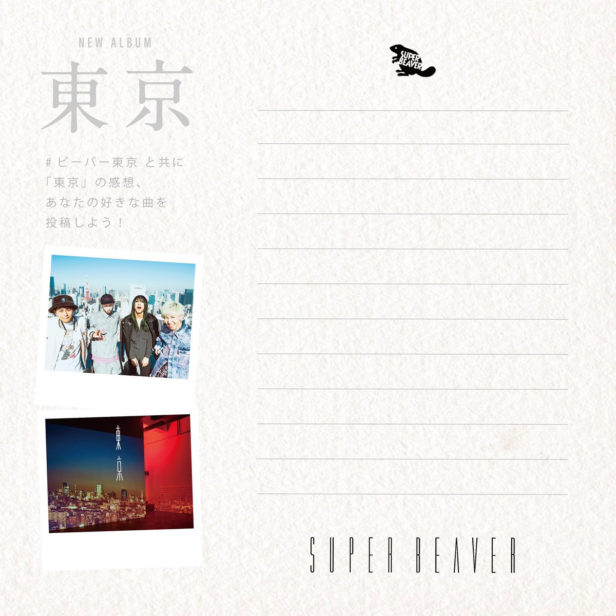 ちゃんと悩んで、一生懸命バンドやって、沢山ライブやって、想って想って想って、できたアルバムだと思います。#ビーバー東京