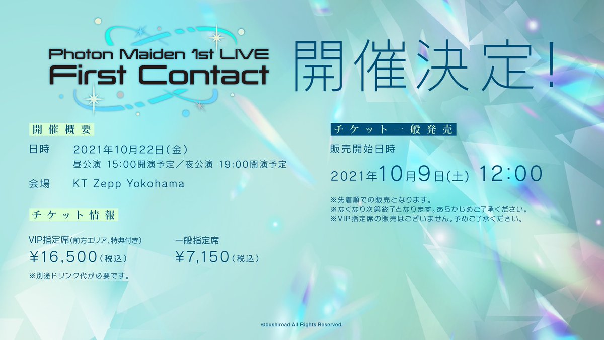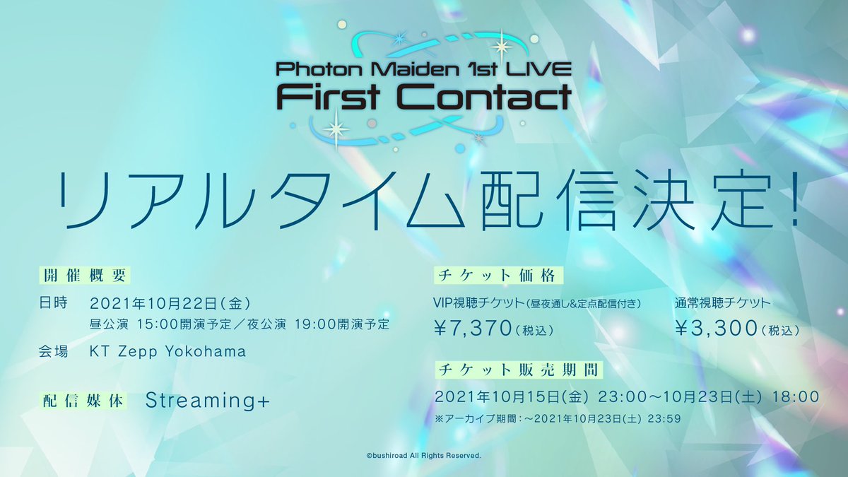 🛸Photon Maiden初の単独ライブ🌎 『Photon Maiden 1st LIVE First Contact』 配信視聴チケット販売期間は【本日18:00迄】 昼公演の配信期間:~10/23(土) 23:59 夜公演の配信配信:10/23(土)12:00~10/24(日)23:59 🎫購入はコチラ☛eplus.jp/sf/detail/3511… #D4DJ #PMaiden#フォトン1stContact
