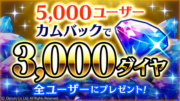 さらに、期間中にカムバックユーザー5,000人突破で全ユーザーに追加でダイヤ3,000個を配布します!