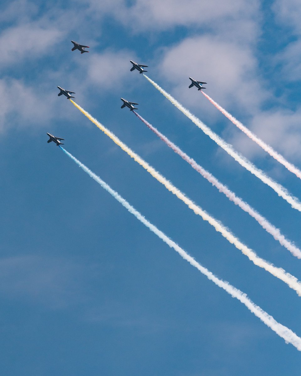 昨夜、色々な思い出話に花が咲いた#2ポジション。猛烈にタイトな編隊を維持しながら、旋回時に観客の視点を意識して微妙に位置を修正していくなど、細かい技が求められます。まずは#2目線のダイヤモンドロールを。#斜め後ろを載せて5rt来たら強者 #ブルーインパルス