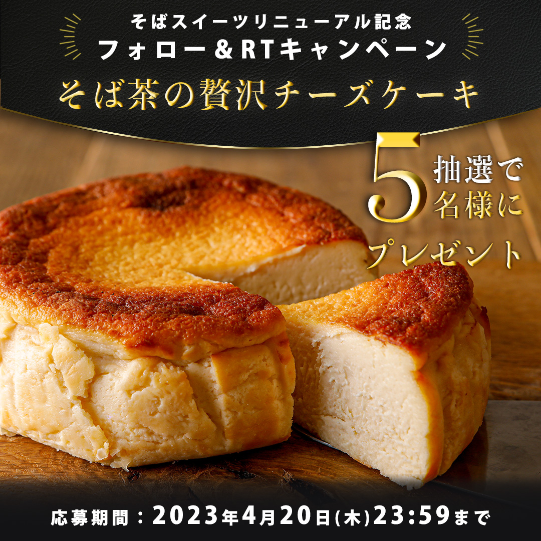 / そばスイーツリニューアル記念 フォロー&RT #キャンペーン 🌸 \ 抽選で5⃣名様に そば茶の贅沢チーズケーキをプレゼント🎁 🎁応募方法 1⃣ @nikkoku_seifun をフォロー 2⃣本ツイートをリツイート 🗓締切:2023/4/20 23:59 ご応募お待ちしております❣ #プレゼントCP 👇応募規約👀