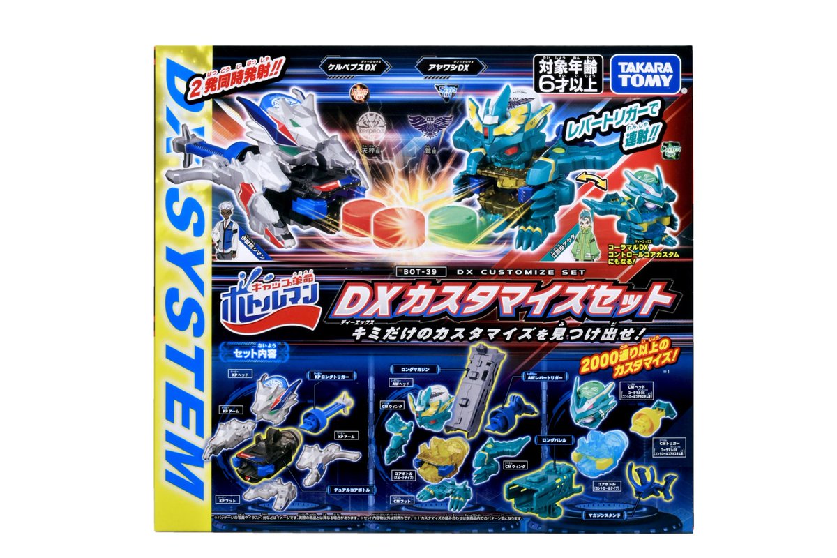 カスタマイズパターン2000通り以上!2発同時にキャップが発射できる「ケルペプスDX」、レバートリガーで軽い力で連射が可能な「アヤワシDX」と、カスタムパーツのセット!